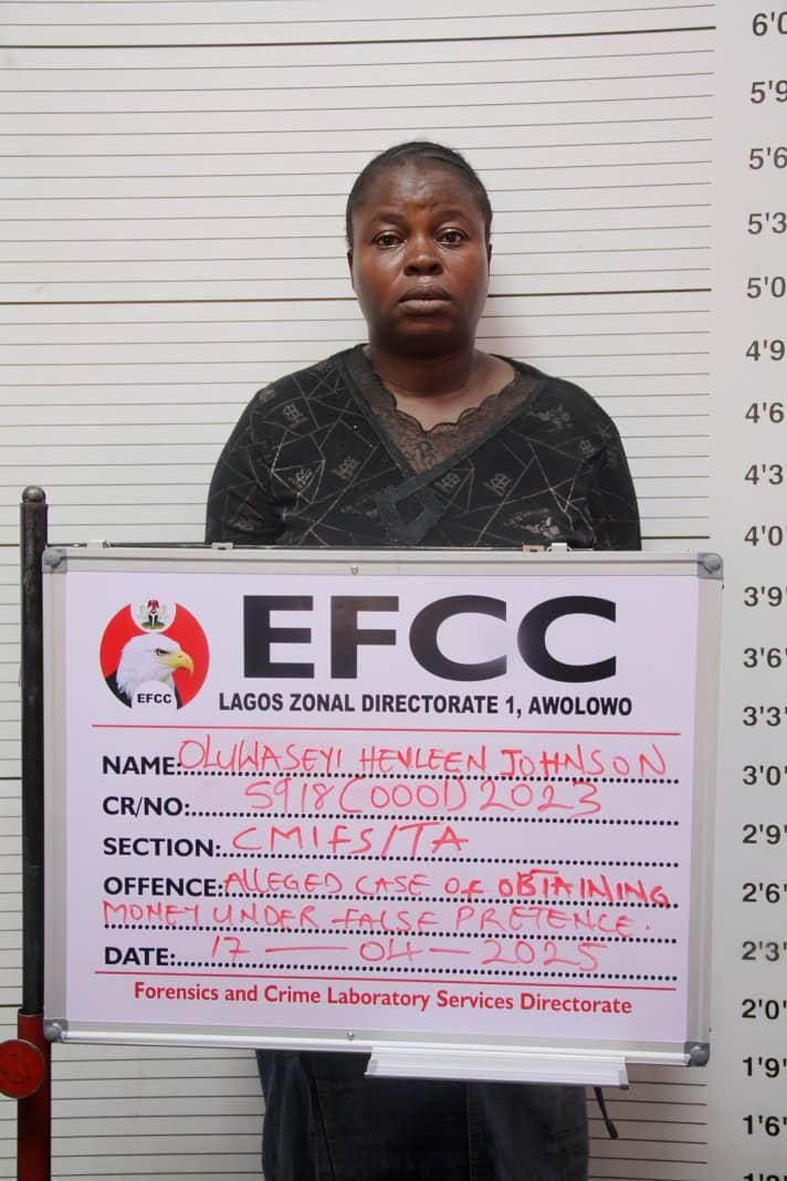 The Lagos Zonal Directorate 1 of the Economic and Financial Crimes Commission, EFCC, on Wednesday, May 28, 2025, arraigned one Oluwaseyi Hevleen Johnson before Justice D.I. Dipeolu of the Federal High Court sitting in Ikoyi, Lagos.