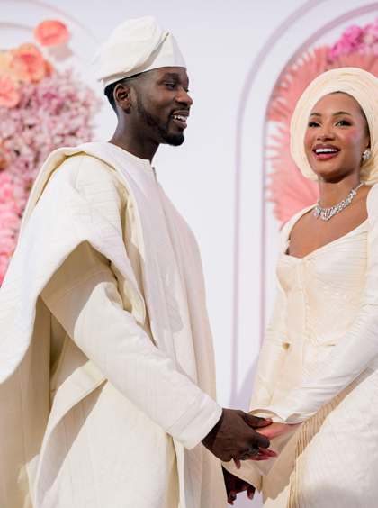 Temi stunned in a custom Fendi gown with Briony Raymond jewelry, later changing into a House of Giles gown for the reception. Eazi wore Saint Laurent for the ceremony before switching to Alexander McQueen for the dinner.